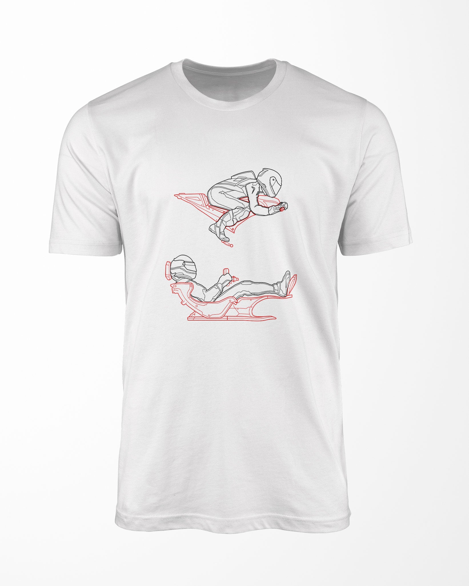 The artwork contrasts the aggressive lean of a motorcycle rider with the laid-back, reclined stance of a Formula 1 driver. One slices the wind, the other merges with the machine. It’s a subtle tribute to the timeless evolution of racing posture — from raw instinct to aerodynamic perfection.