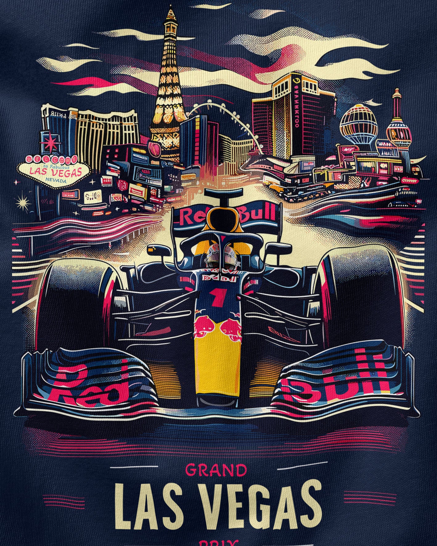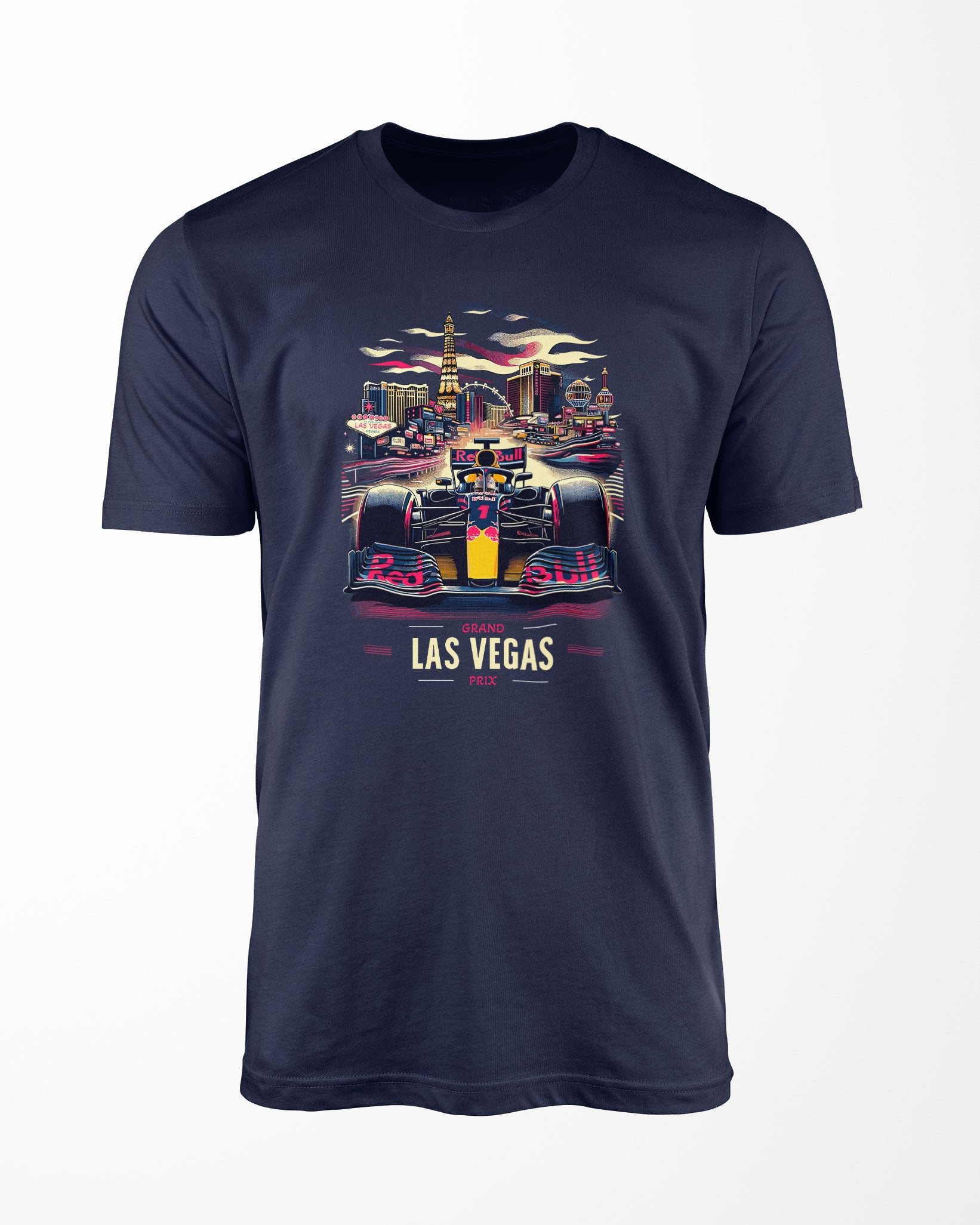 Celebrate the thrill of the Formula 1 Las Vegas Grand Prix with our commemorative T-shirt! This unique design captures the essence of Las Vegas, blending speed and the city's spectacle. Perfect for F1 fans and the vibrant energy of Vegas, this T-shirt is a symbol of passion for speed and glamour. Dress in the spirit of one of the most exciting races on the F1 calendar and take the magic of Vegas anywhere!